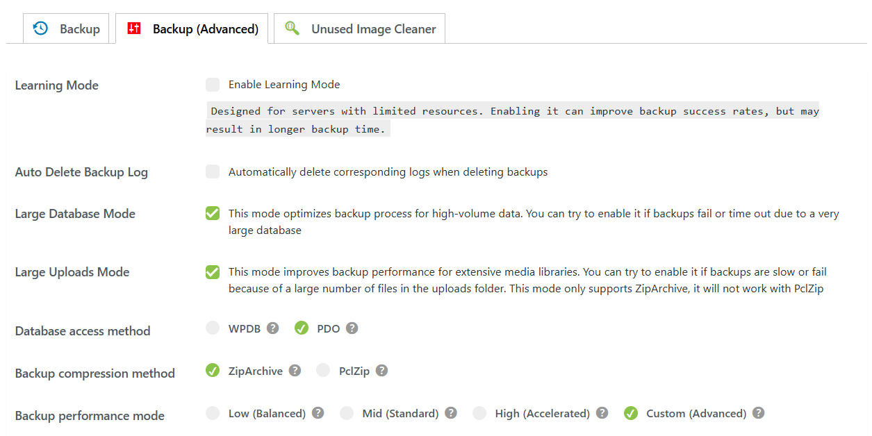 • 3. Backup performance mode: Custom