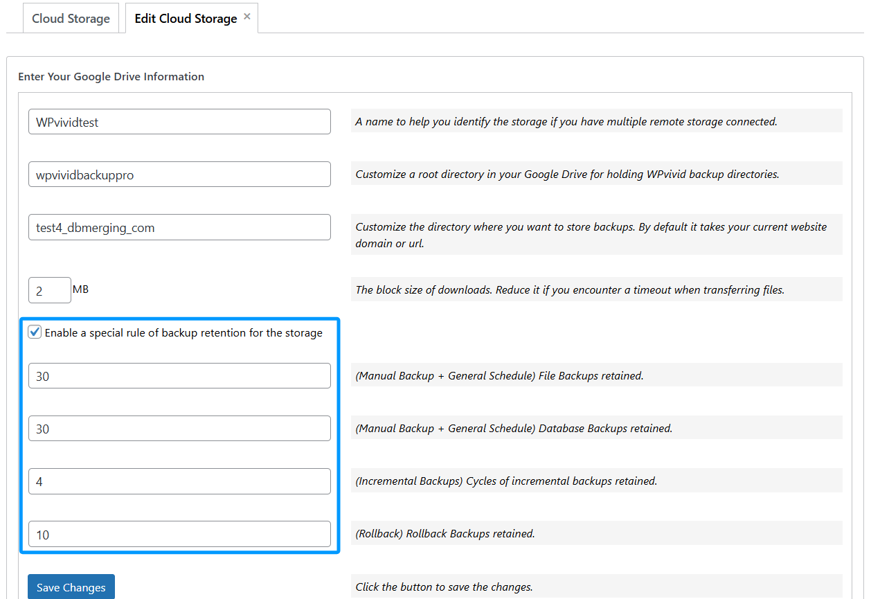 WPvivid allows you to set independent retention rules for different storage locations. This flexibility ensures you can keep a few recent backups on your server for quick restoration while maintaining a larger archive on the cloud.