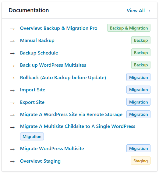 The Documentation module serves as a navigational hub, providing quick links to key features, detailed guides, and overviews within the plugin’s knowledge base.